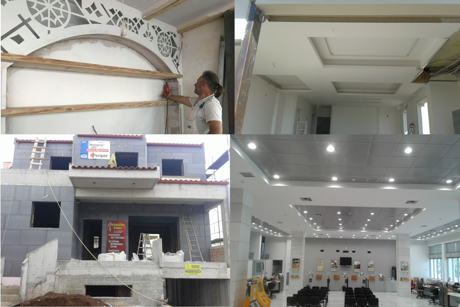 - Διακοσμήσεις εσωτερικών και εξωτερικών χώρων με γυψοσανίδα